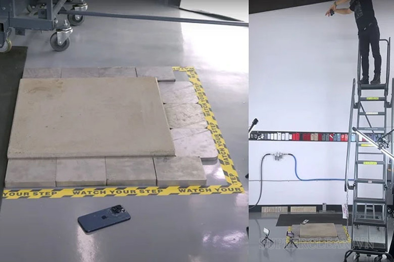 Ví dụ: EverythingApplePro E A P đã thực hiện thử nghiệm drop test iPhone 15 Pro và Promax trên nền bê tông cứng ở một bãi đỗ xe để so sánh độ bền. Dưới đây là kết quả drop test của điện thoại iPhone 15 Pro Max: